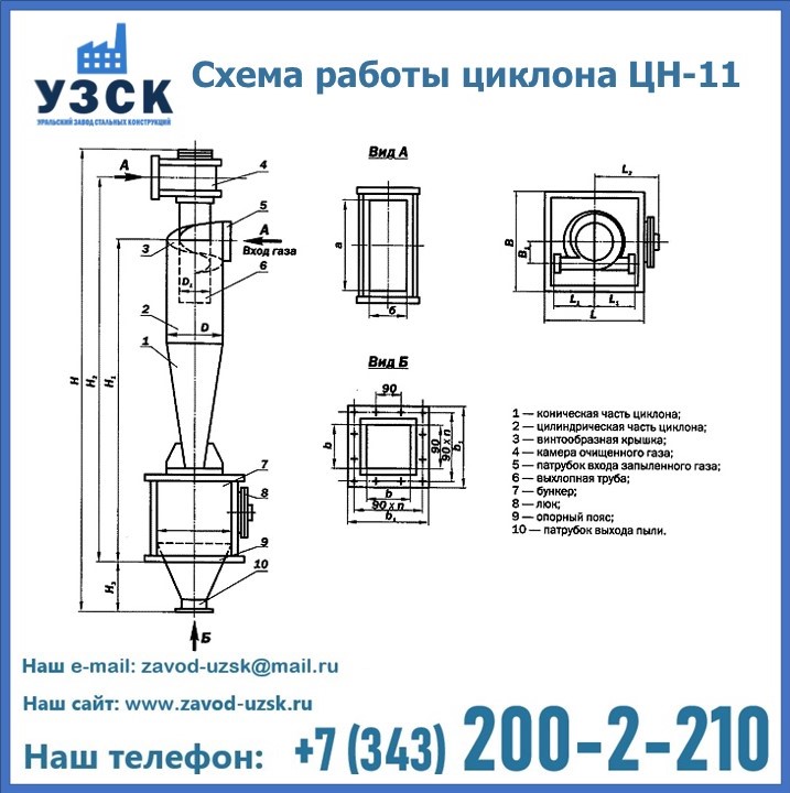 При этом ощутимой разницы в цене между универсальным и узконаправленным, подобранным в соответствии с конкретными техническими требованиями циклоном, нет. Стоимость воздухоочистительного оборудования типа циклон обусловлена маркой и толщиной стали, из которого он изготовлен, сложностью и специфичностью конструкции, наличием дополнительного оснащения (бункер, улитка и другие). При необходимости, на заводе УЗСК в Кирове будет изготовлен циклон по индивидуальным техническим чертежам заказчика.