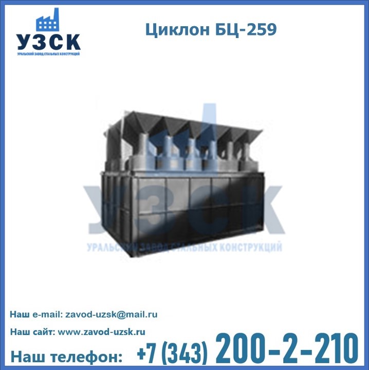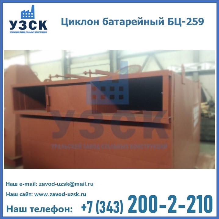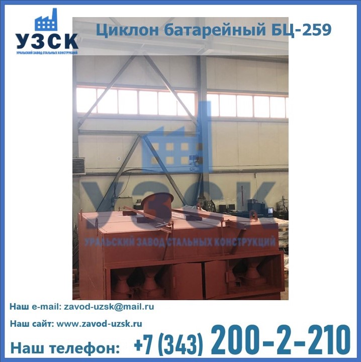 Приобрести качественное оборудование, в том числе, циклоны БЦ-259, можно в компании УЗСК в Кирове. Мы предлагаем долговечную и надежную продукцию по приемлемой цене. Заказать и купить циклоны или другие изделия высокого качества можно через сайт Уральского Завода Стальных Конструкций, или позвонив по указанному в разделе «Контакты» телефону.