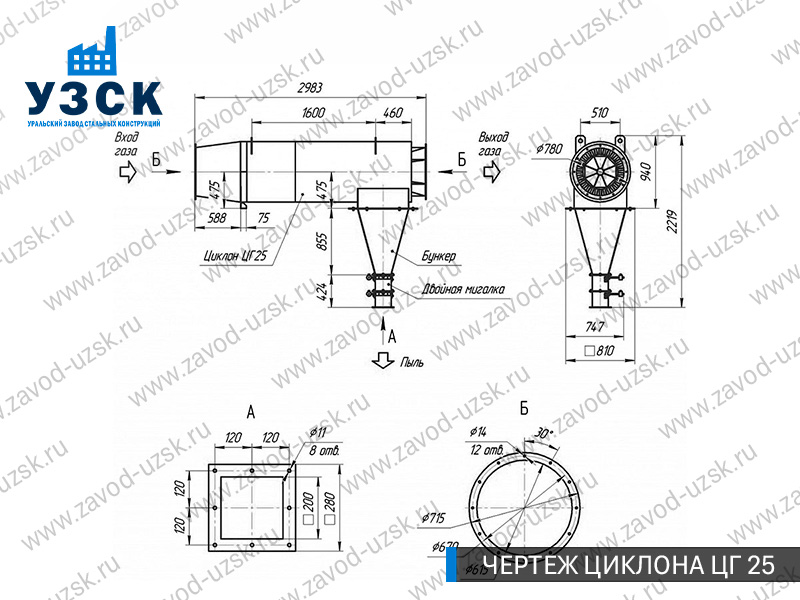 Монтаж циклона-искрогасителя ЦГ должен осуществляться непосредственно к горизонтальному вентиляционному каналу на входе в систему фильтрации и аспирации. Заказать изготовление по индивидуальному техзаданию или купить готовый циклон-искрогаситель ЦГ на заводе УЗСК в Кирове можно, оставив заявку прямо на сайте или позвонив по указанному телефону, уточнив все детали касательно продажи оборудования.