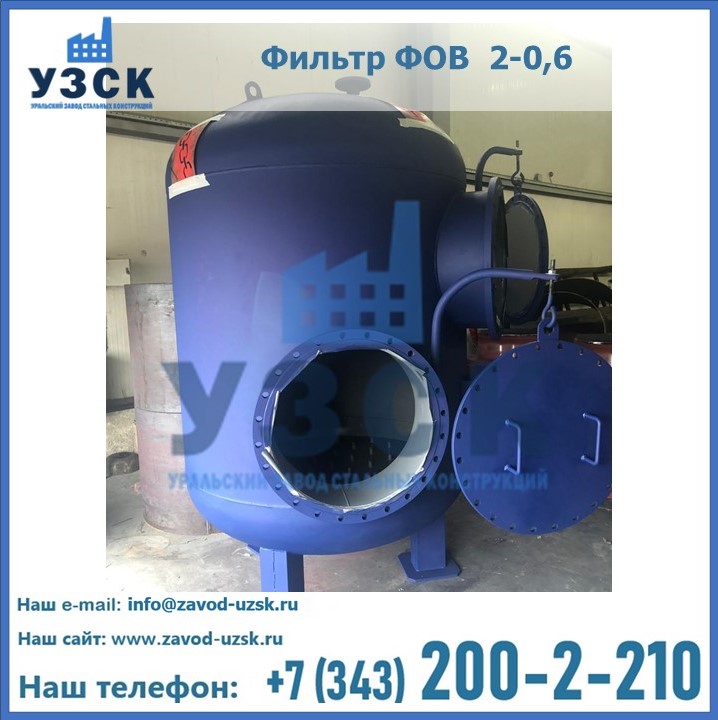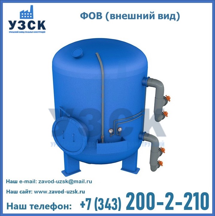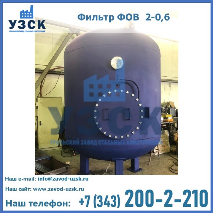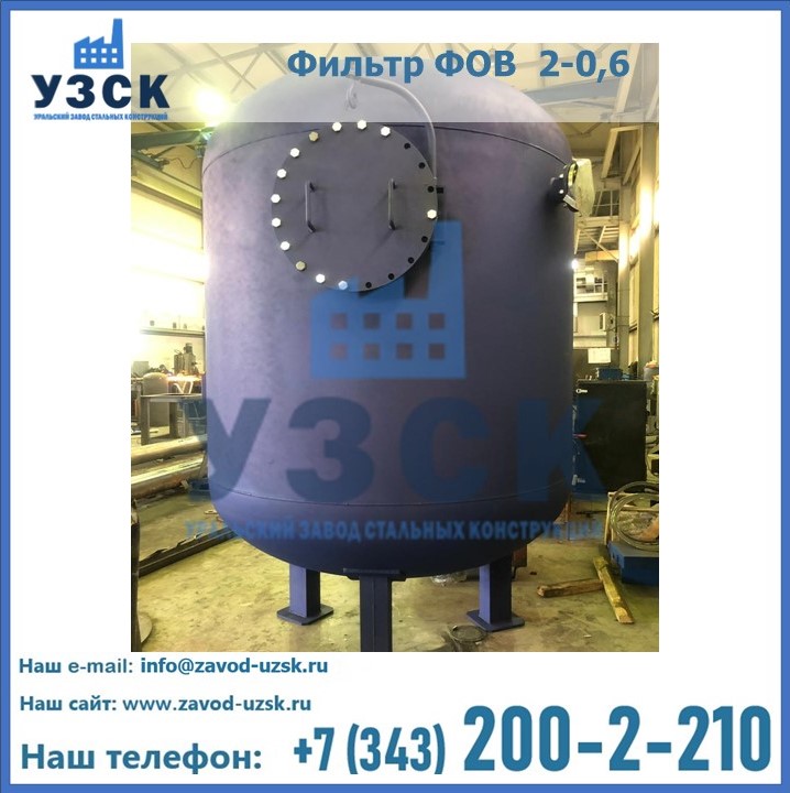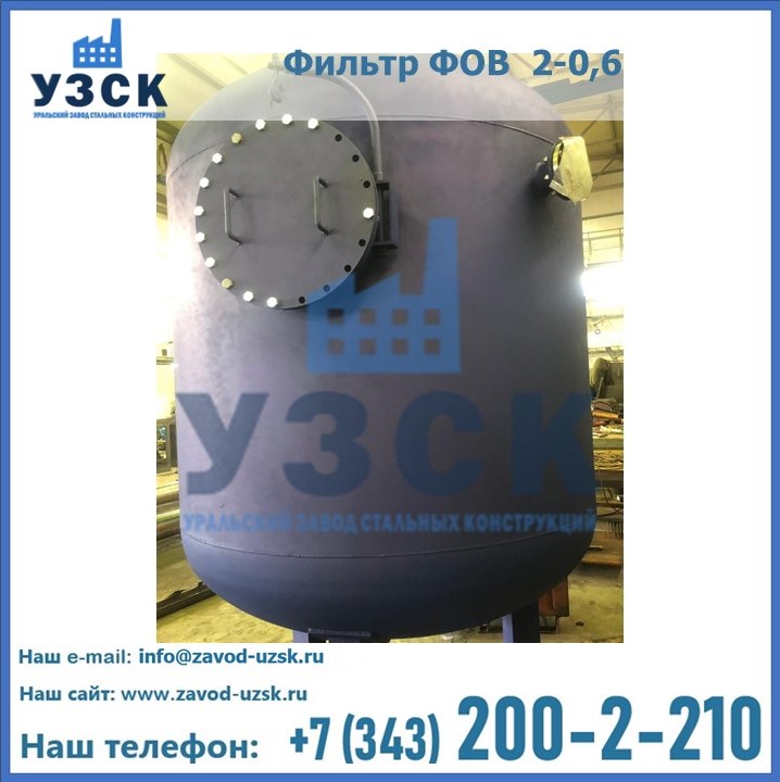 Удаление взвешенных веществ различного уровня дисперсности из рабочих жидкостей эффективно проводит фильтр осветлительный типа ФОВ (скорый или механический) — вертикально-цилиндрической формы установка, разработанная для систем водоподготовки различного класса. Оборудование представляет собой однокамерный агрегат для очистки воды рекомендованный для применения на станциях очистки стоков, в коммунальных котельных, на ТЭЦ, в промышленных отопительных системах и пр. Заказать производство ФОВ фильтров предлагает наш Уральский завод стальных конструкций в Кирове. У нас можно купить фильтрационное оборудование различного класса и типа, в том числе фильтры ФОВ из нержавеющей стали.