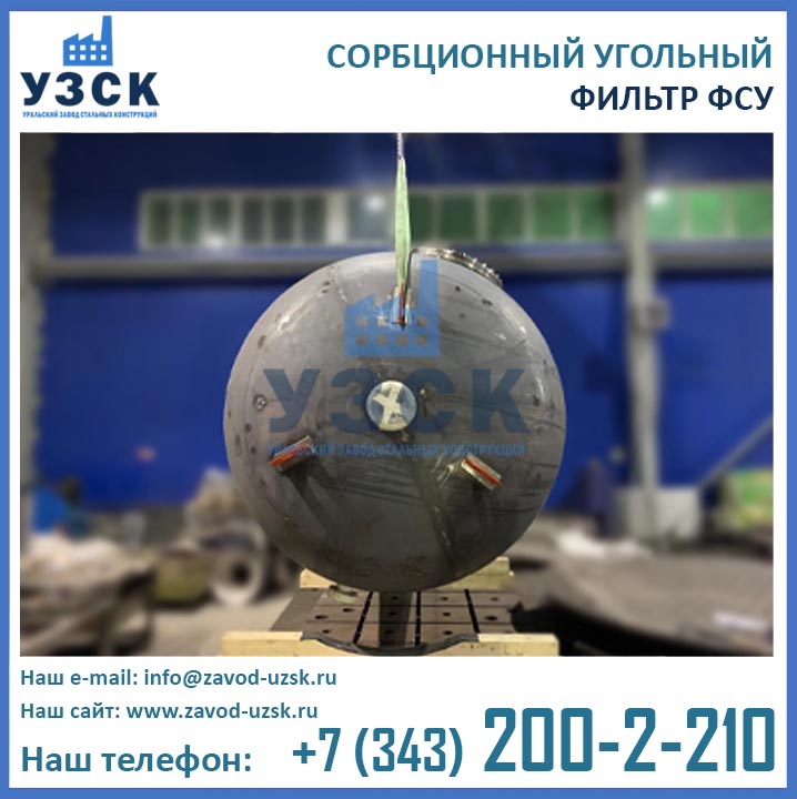 Качественную работу отопительных и промышленных котельных, линий по очистке конденсата и природных вод, электростанций обеспечивает фильтр сорбционный угольный типа ФСУ — вертикальный сосуд с одной камерой цилиндрической формы. Основное назначение оборудования состоит в глубокой очистке возвращаемого с производства конденсата от запахов, органических загрязнений и привкусов. Использование ФСУ в системах водоподготовки гарантирует очищение субстанции от масел, органических примесей, остатков нефтепродуктов до нормального значения — 0.52-1.0 мг/л. Купить в Кирове угольные фильтры предлагает наш Уральский завод стальных конструкций. Мы выполняем производство ФСУ под нужды предприятия, возможно изготовление сорбционных фильтров ФСУ из нержавеющей стали включая корпус и внутренние устройства.