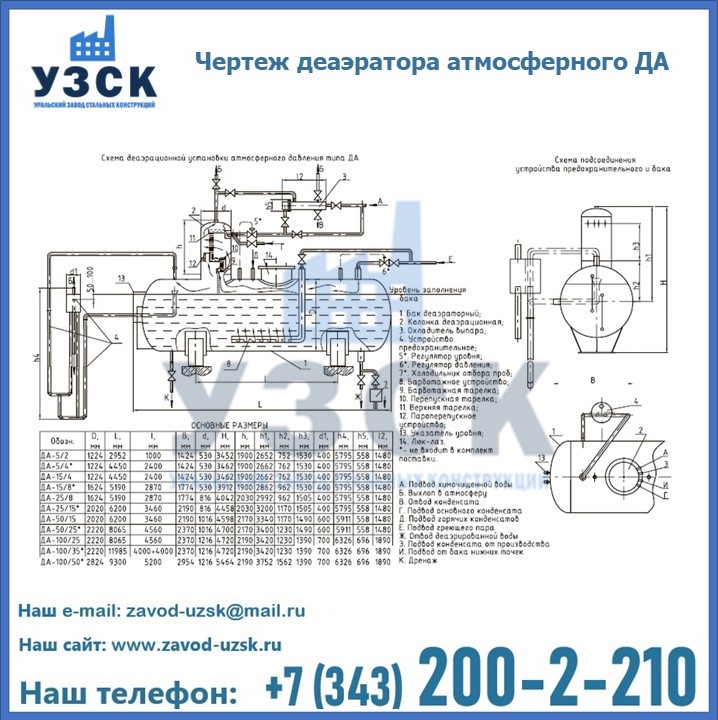 Приобрести качественное оборудование, в том числе, деаэраторы ДА, можно в компании УЗСК в Кирове. Мы предлагаем долговечную и надежную продукцию по приемлемой цене. Заказать и купить деаэраторы или другие изделия высокого качества можно через сайт Уральского Завода Стальных Конструкций, или позвонив по указанному в разделе «Контакты» телефону.